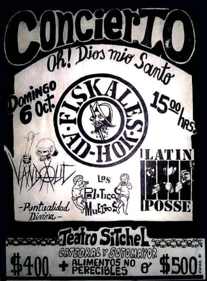 “Ellos se arreglan el pelo y todo lo hacen con estilo, ellas saben que un golpe se contesta con otro y usan bototos militares. Son punks de Santiago de Chile. Es domingo y el recital publicitado a través de fotocopias deslavadas en postes y zaguanes de esta macro aldea, no se realiza en el viejo teatro Sichtel de Catedral y Sotomayor como estaba anunciado sino en el patio colonial de una casona antigua en la ciudad de abajo. Son las cuatro de la tarde. Tocan Vandalik, Los Políticos Muertos, Latin Posse y los Fiskales Ad-Hok.” (Redolés, La Nación, 14 octubre 1991, p.37).