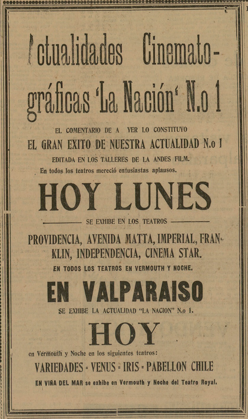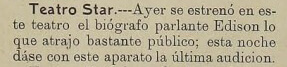 Nota sobre estreno de biógrafo parlante Edision, en el Teatro Star (1927), fotografía del Flicker de Santiago Nostálgico.